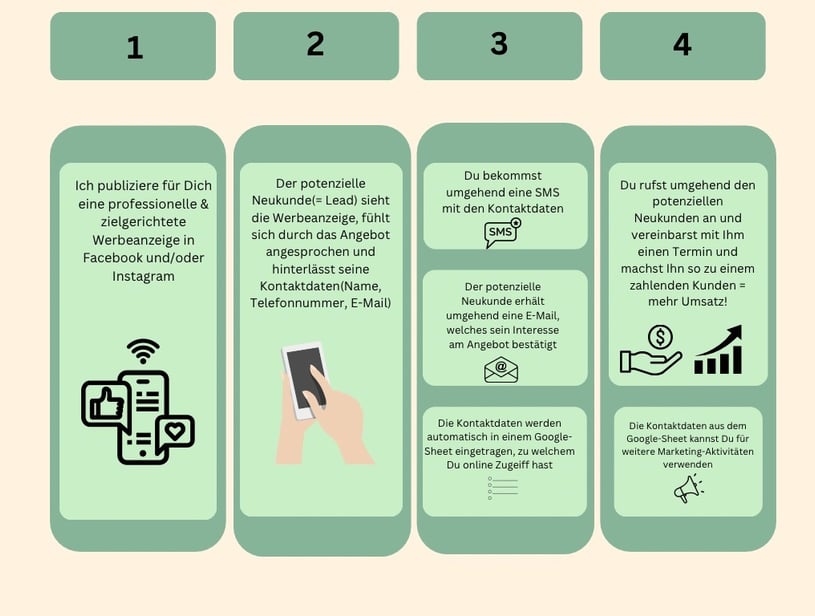 Starte mit einer kostenlosen Testwoche und einem Werbebudget von nur 100€. Überzeuge dich selbst von der Qualität und Effektivität meiner Leistung.